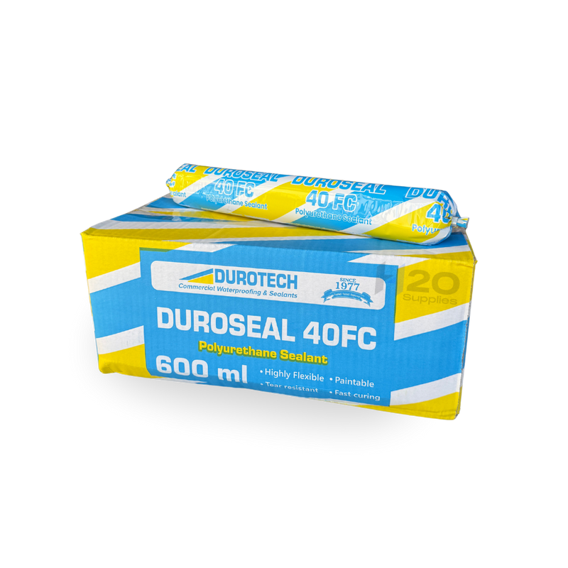 Duroseal 40FC is a fast-curing, flexible polyurethane sealant formulated for sealing joints and cracks in both vertical and horizontal surfaces. It delivers outstanding adhesion, flexibility, and durability across a wide range of construction materials, including concrete, masonry, and pre-cast panels. Its one-part moisture-curing formula makes it easy to apply, and once cured, it resists weathering, movement, and UV exposure — making it ideal for both internal and external use.