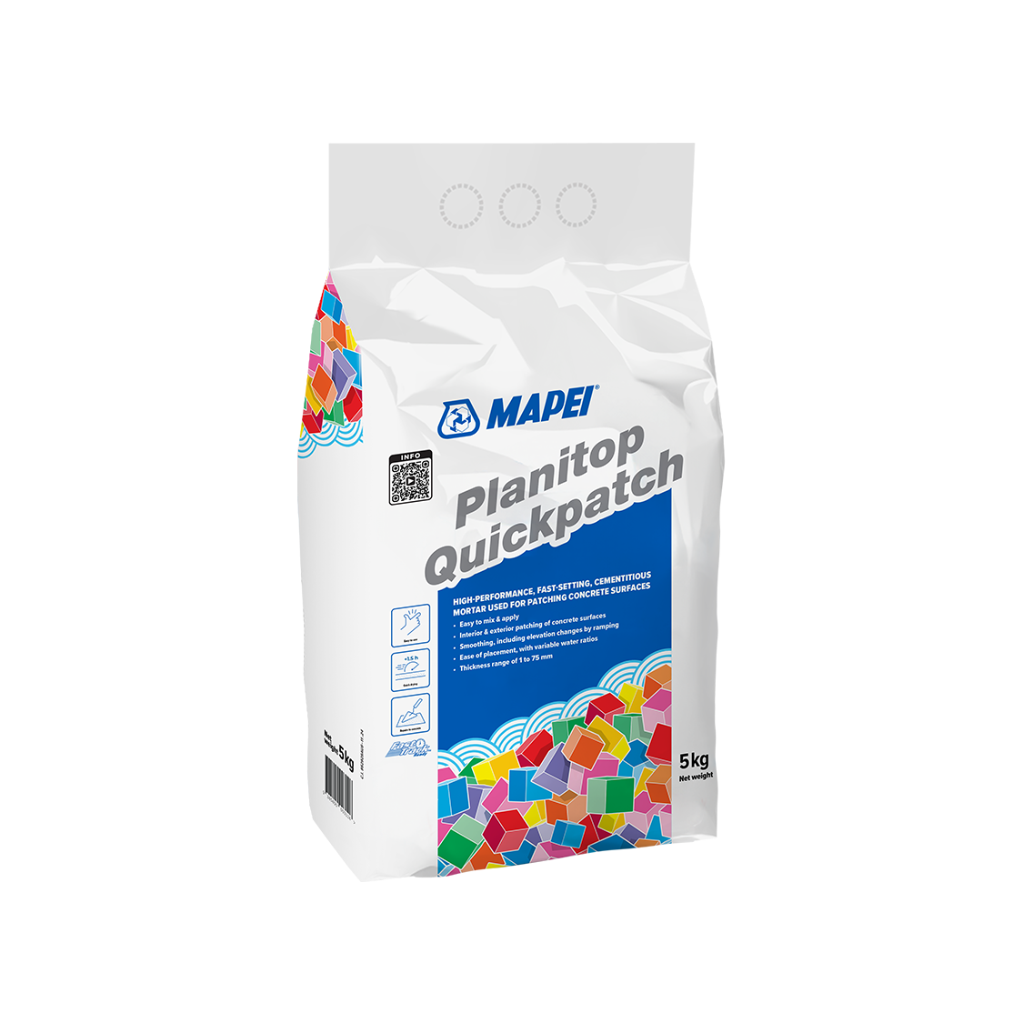 Mapei Planitop Quickpatch is a high-performance, fast-setting cementitious repair mortar for patching and smoothing concrete surfaces. It provides excellent adhesion, rapid strength development, and a natural grey finish that blends seamlessly with existing concrete.
